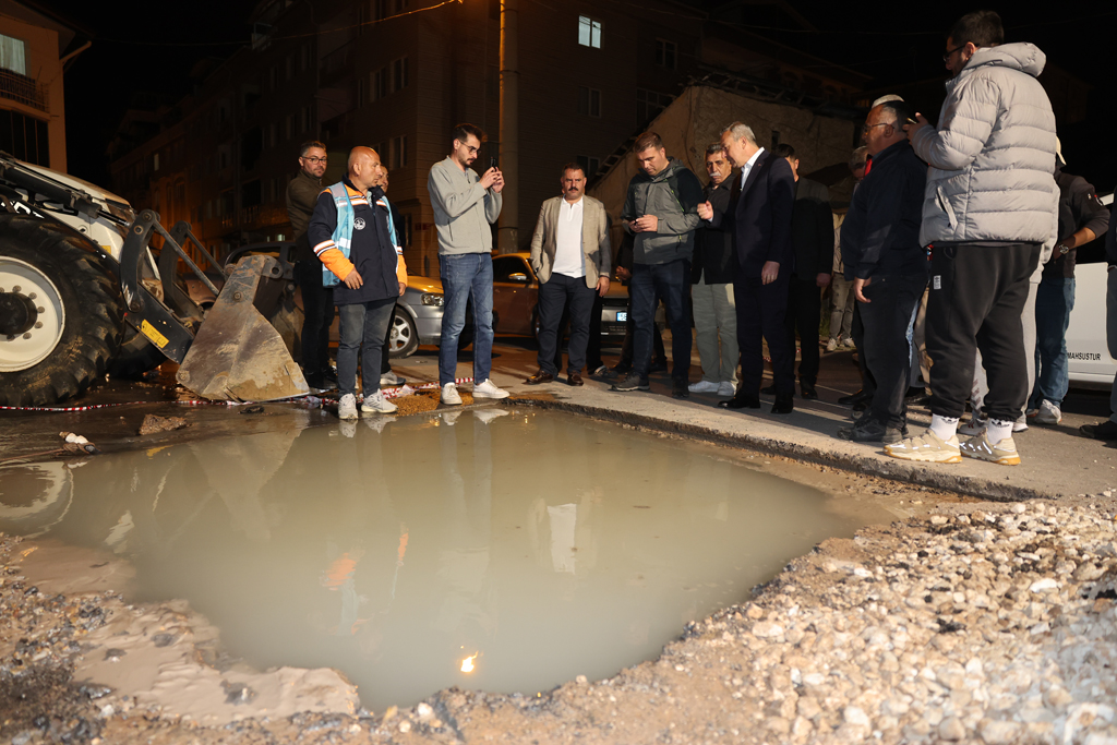 Sivas Belediye Başkanı Dr. Adem Uzun, gece saatlerinde arızanın yaşandığı bölgeyi ziyaret ederek çalışmaları yerinde inceledi ve ekiplere kolaylıklar diledi.