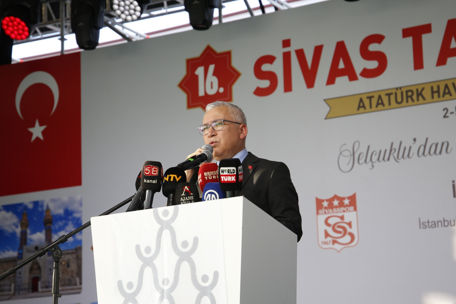 “Selçuklu’nun taht kurduğu Sivas, bir sürü hazinenin içinde bulunduğu sandık gibidir. Halk şairleriyle, halk ozanlarıyla bütün Türkiye’ye mal olmuştur. Bu güzel beraberliğin milletimizin birliğine ve devletimizin yüceliğine vesile olmasını diliyorum.” diye konuştu.