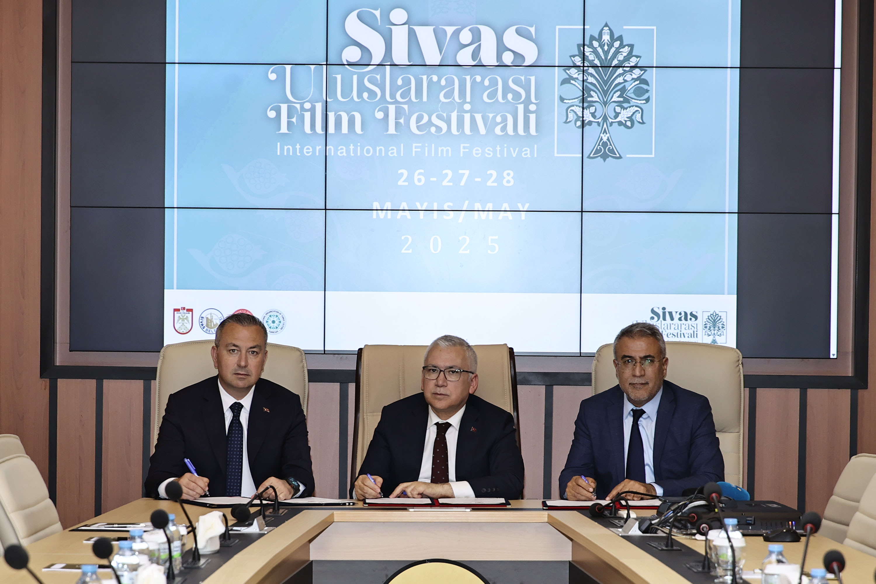 Konuşmanın ardından Vali Yılmaz Şimşek, Sivas Belediye Başkanı Adem Uzun ve Sivas Cumhuriyet Üniversitesi Rektör V. Prof. Dr. Hayati Öztürk katılımıyla film festivali iş birliği protokolü imzalandı.
