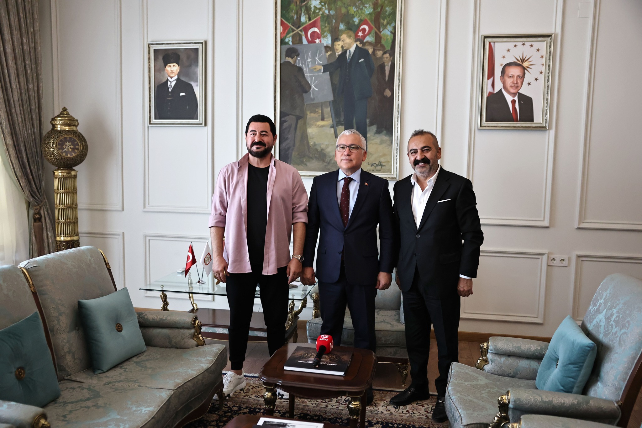 4 Eylül Sivas Kongresi’nin 106. yıl dönümü kutlama etkinlikleri kapsamında ilimizde konser veren ünlü sanatçı ve hemşehrimiz Serkan Kaya, oyuncu Ömer Kurt ve beraberindeki heyet, Belediye Başkanı Dr. Adem Uzun’u makamında ziyaret etti.