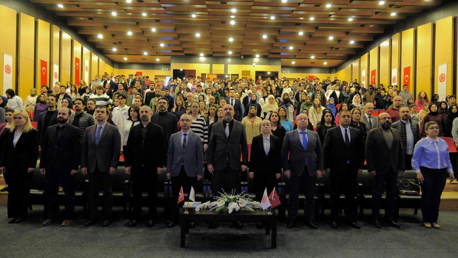 Rektör Yardımcısı Prof. Dr. İnan, yaptığı açış konuşmasında İstiklâl Marşı'nın milletimizin ortak vicdanının, inancının ve kararlılığının bir sembolü olduğunu vurgulayarak İstiklâl Marşı’nın zor dönemlerin yokluğunda milli ve manevi ruh bilinci ile yazıldığını ifade etti.