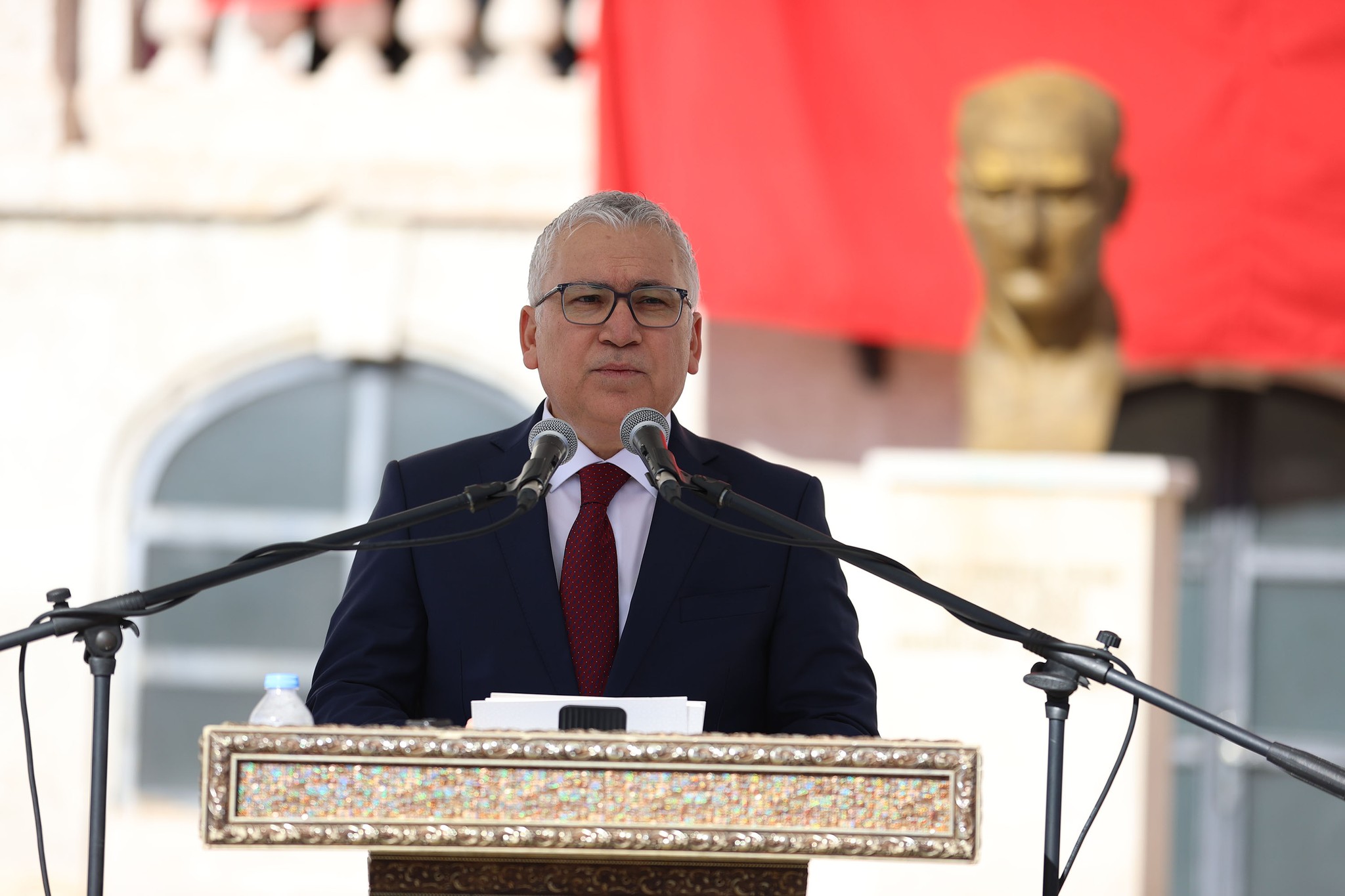 Törende konuşan Vali Şimşek, "Bundan tam 101 yıl önce bugün İstiklal Savaşımızın ardından Türk milleti küllerinden adeta yeniden doğdu. Türk tarihinde yeni bir sayfa açıldı. Şüphesiz 29 Ekim 1923, yalnızca bir tarih değil; milletimizin özgürlüğe, bağımsızlığa ve çağdaşlığa uzanan yolculuğunda bir dönüm noktasıdır" ifadelerini kullandı.