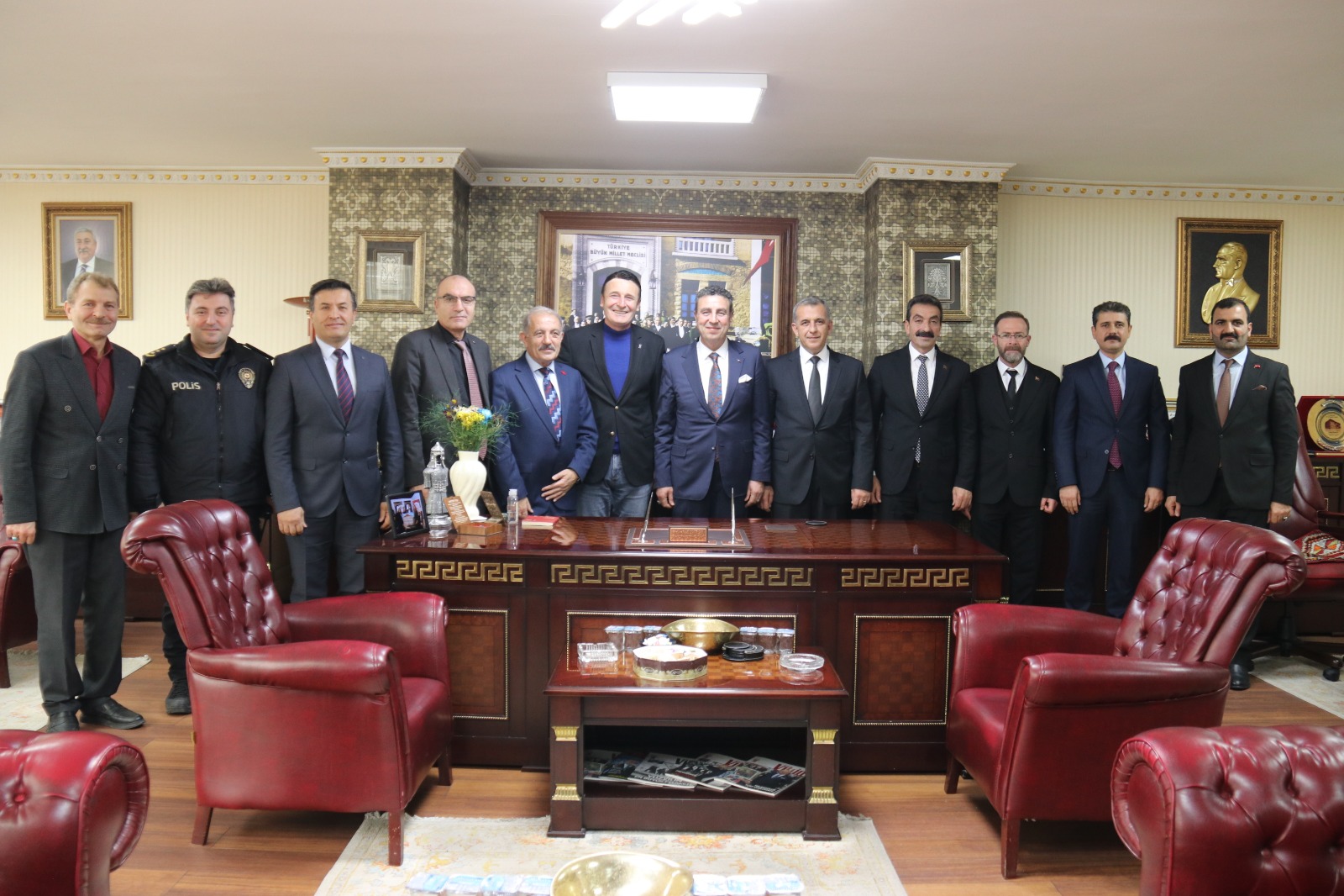 Gerçekleşen ziyarette, Birliğe bağlı oda başkanları da hazır bulundu. Samimi bir ortamda gerçekleşen görüşmede, şehirdeki asayiş durumu, esnafın güvenliği ve kurumlar arası iş birliği konularında karşılıklı görüş alışverişinde bulunuldu.