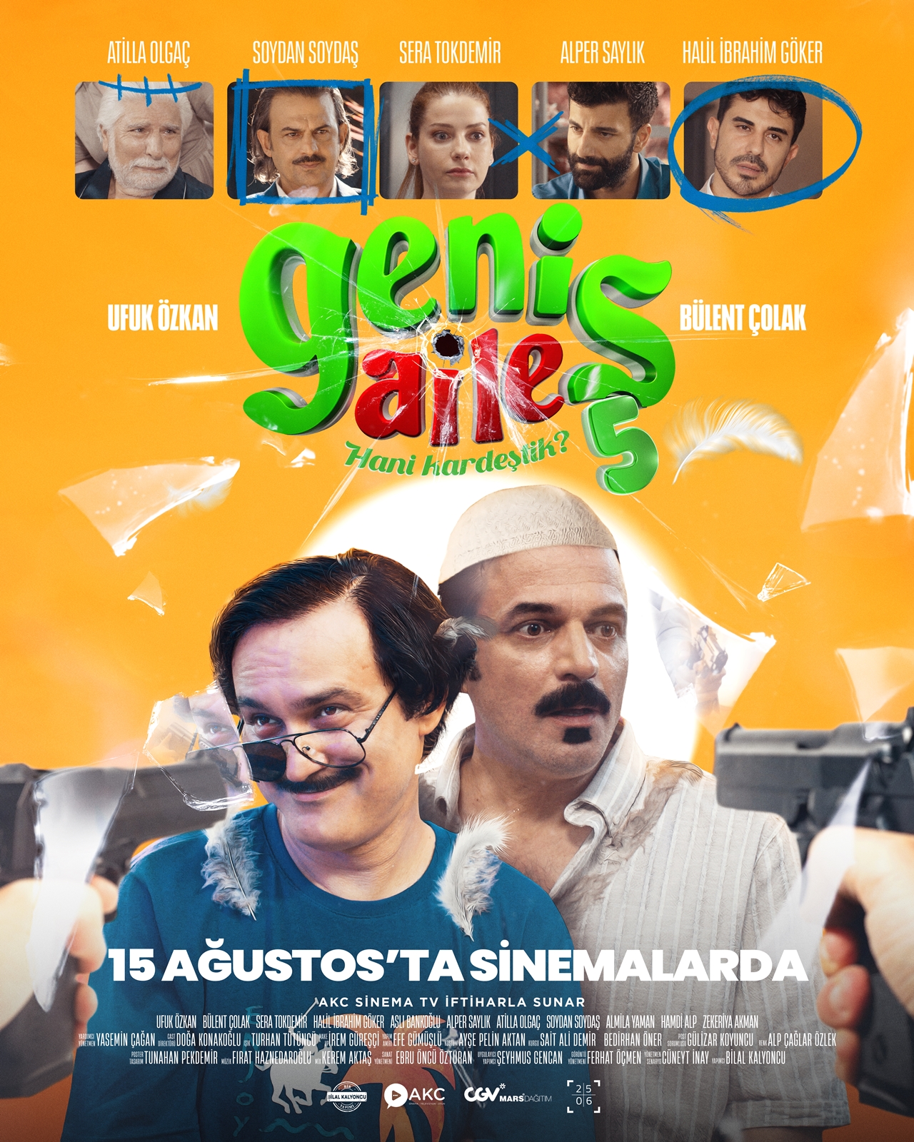 Başrollerde Ufuk Özkan, Bülent Çolak, Sera Tokdemir, Atilla Olgaç, Soydan Soydaş, Alper Saylık ve Halil İbrahim Göker gibi tanınmış isimler yer alıyor. İzleyiciyi her zamanki gibi kahkahalara boğacak bir hikâye bekliyor.“Geniş Aile 5” aile bağlarını, arkadaşlık ilişkilerini ve kuşaklar arası çatışmaları her zamanki eğlenceli üslubuyla ele alıyor. Maceralarla dolu yeni senaryosuyla film, hem serinin müdavimlerine hem de yeni izleyicilere hitap ediyor.Geniş Aile'nin sıcak, komik ve zaman zaman duygulandıran hikâyesiyle milyonların kalbinde taht kuran karakterleri, yaz sezonuna damgasını vurmaya hazırlanıyor.
