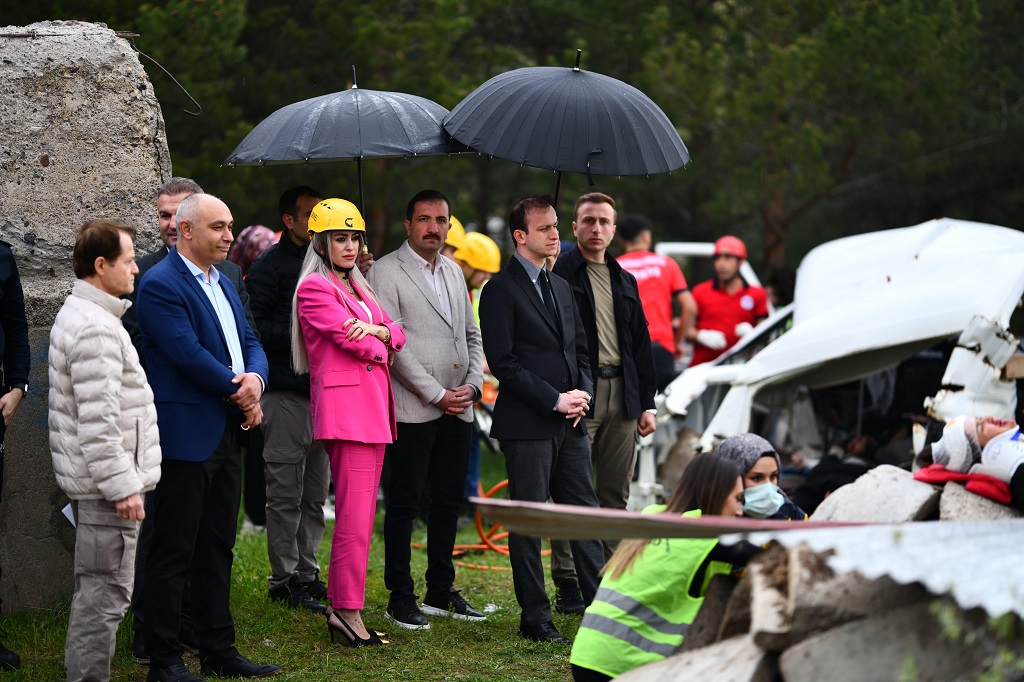 Kurtarma Derneği (İMAYKUT) iş birliğinde gerçekleştirilen tatbikata; İmranlı Kaymakamı Recep Ali Çolak, İmranlı Belediyesi Başkanı Ali Ürek, İmranlı Meslek Yüksekokulu Müdürü Doç. Dr. Seval Elden Ürgüp, ilçe protokolü ve öğrenciler katıldı.