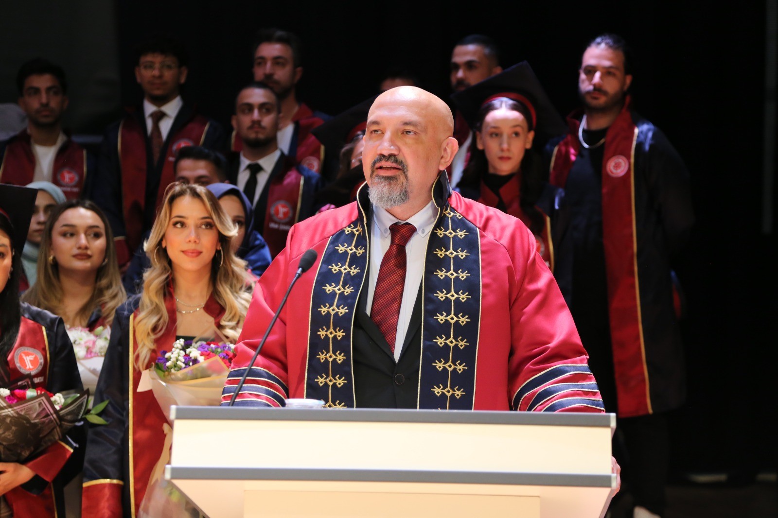 Saygı Duruşu ve İstiklal Marşı’nın ardından açış konuşmalarına geçildi. Açılış konuşmasını yapan Fakülte Dekanı Gülmez, ailelere seslenerek “Emanetiz olan öğrencilerimizi teorik ve pratik bilgilerle donatarak mesleklerini uygulamaya hazır hale getirmeye çalıştık. Sizlere ve memleketimize en iyi şekilde hizmet edeceklerinden eminiz” dedi. Rektör Yardımcısı Prof. Dr. Salih Cem İnan da; “Hayatta zorluklarla karşılaşabilirsiniz. Sizlere Mustafa Kemal Atatürk’ün şu sözünü hatırlatmak isterim “Ümitsiz durumlar yoktur, ümitsiz insanlar vardır. Ben hiçbir zaman ümidimi yitirmedim.” Sizler de ülkemiz, aileniz ve kendiniz için çalışmaktan asla vazgeçmeyin” dedi.