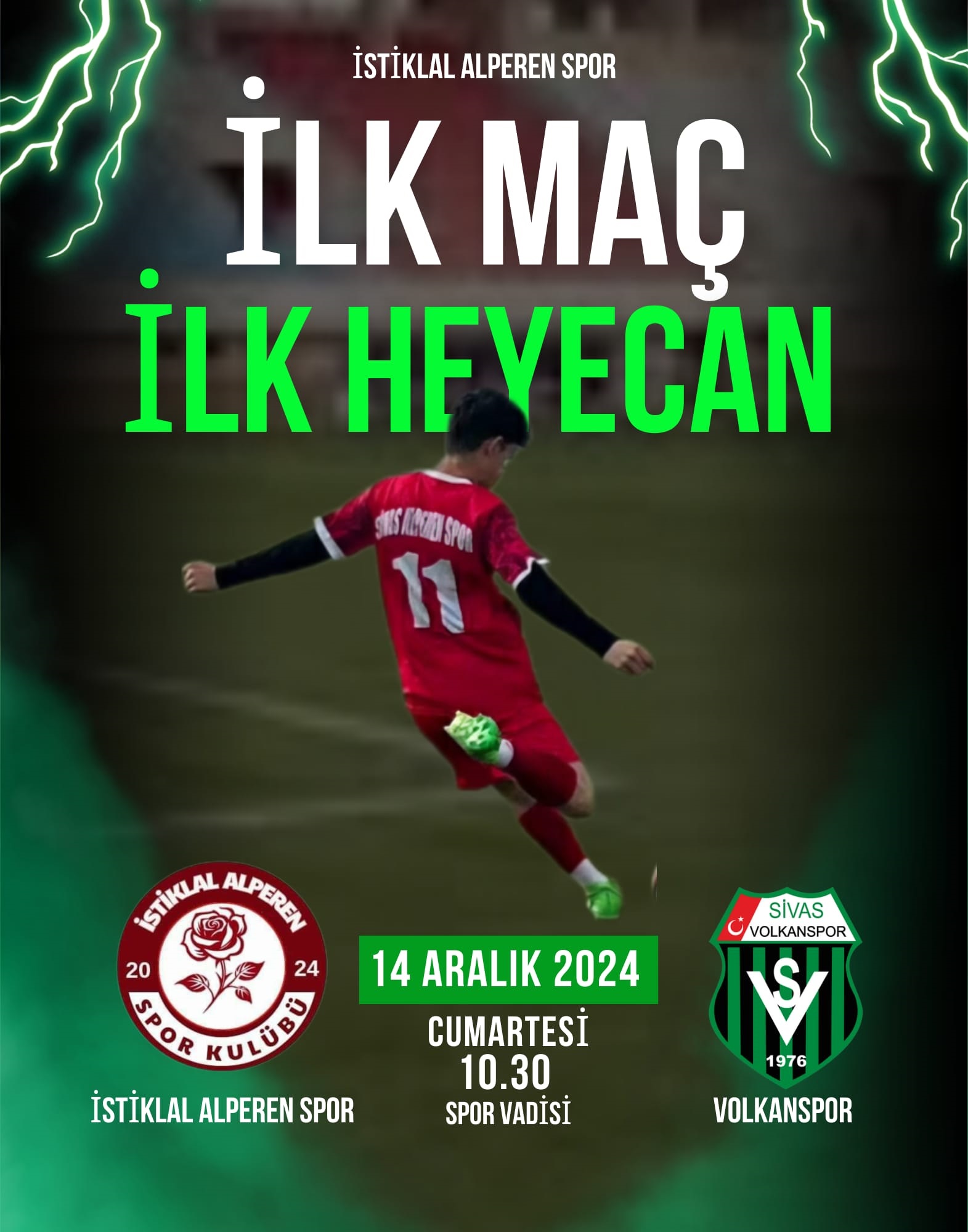 4 Eylül Spor Vadisi sahasında Volkanspor ile karşılaşacak olan İstiklal Alperen Spor'un hedefi galibiyet. İlk maç İlk heyecan sloganıyla sahaya çıkacak olan İstiklal Alperen Spor 14.12.2024 Cumartesi tarihinde saat:10.30da Spor Vadisi sahasında Volkan Spor ile karşılaşacak. Kulüp tarafından yapılan açıklamada hedeflerinin galibiyet olduğunu belirtip, tüm futbol severleri bu özel karşılaşmaya davet ettiler.