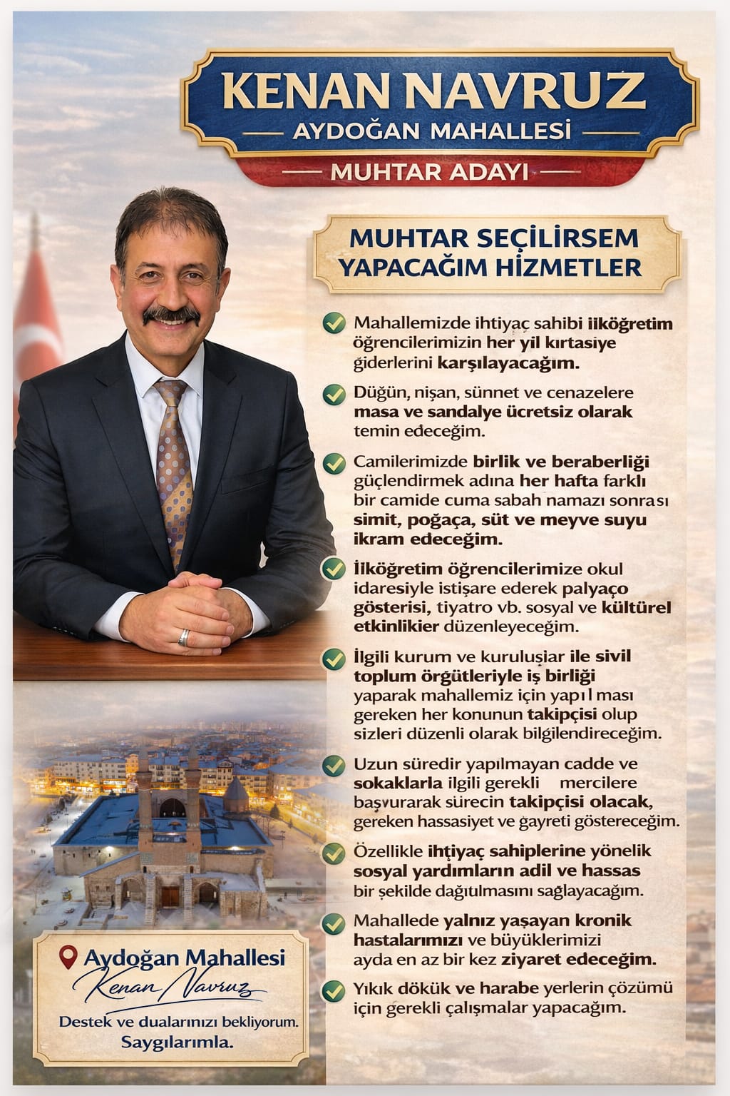 Kenan NAVRUZ Aydoğan Mahellesine Muhtar Adayı Olurken Yapacağı Hizmetleri Şöyle Sıraladı