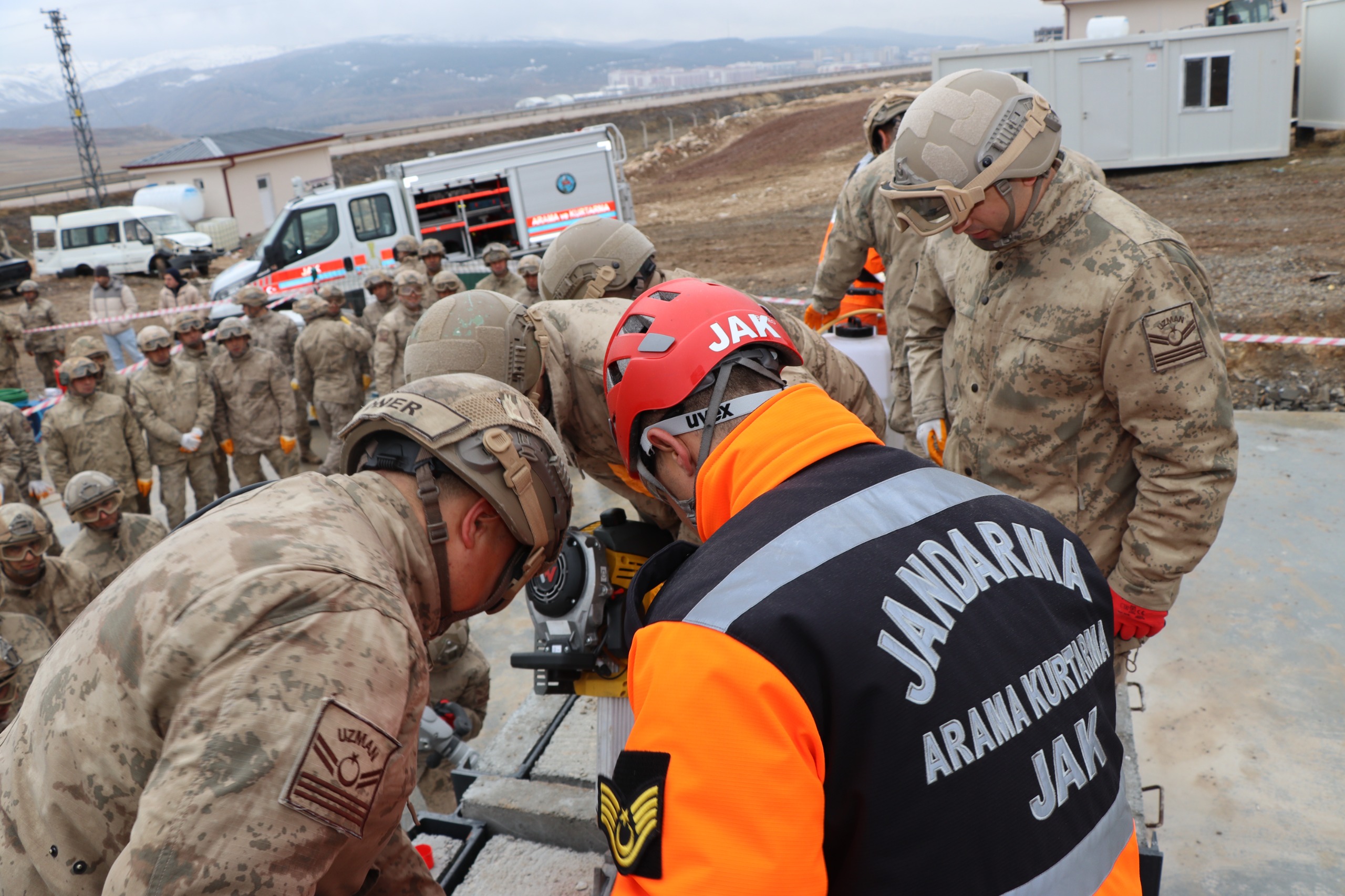 Sivas İl Afet ve Acil Durum Müdürlüğü eğitim uygulama alanında gerçekleştirilen eğitimde, Sivas İl Jandarma Komutanlığı Asayiş Komando Bölük komutanlığı personeline deprem öncesinde, sırasında ve sonrasında; muhtemel deprem durumlarında hızlı ve etkili müdahale yeteneğini artırmak amacıyla güvenlik önlemleri, kurtarma operasyonları için gerekli olan adımlar ve ekipman kullanımı konuları işlendi.