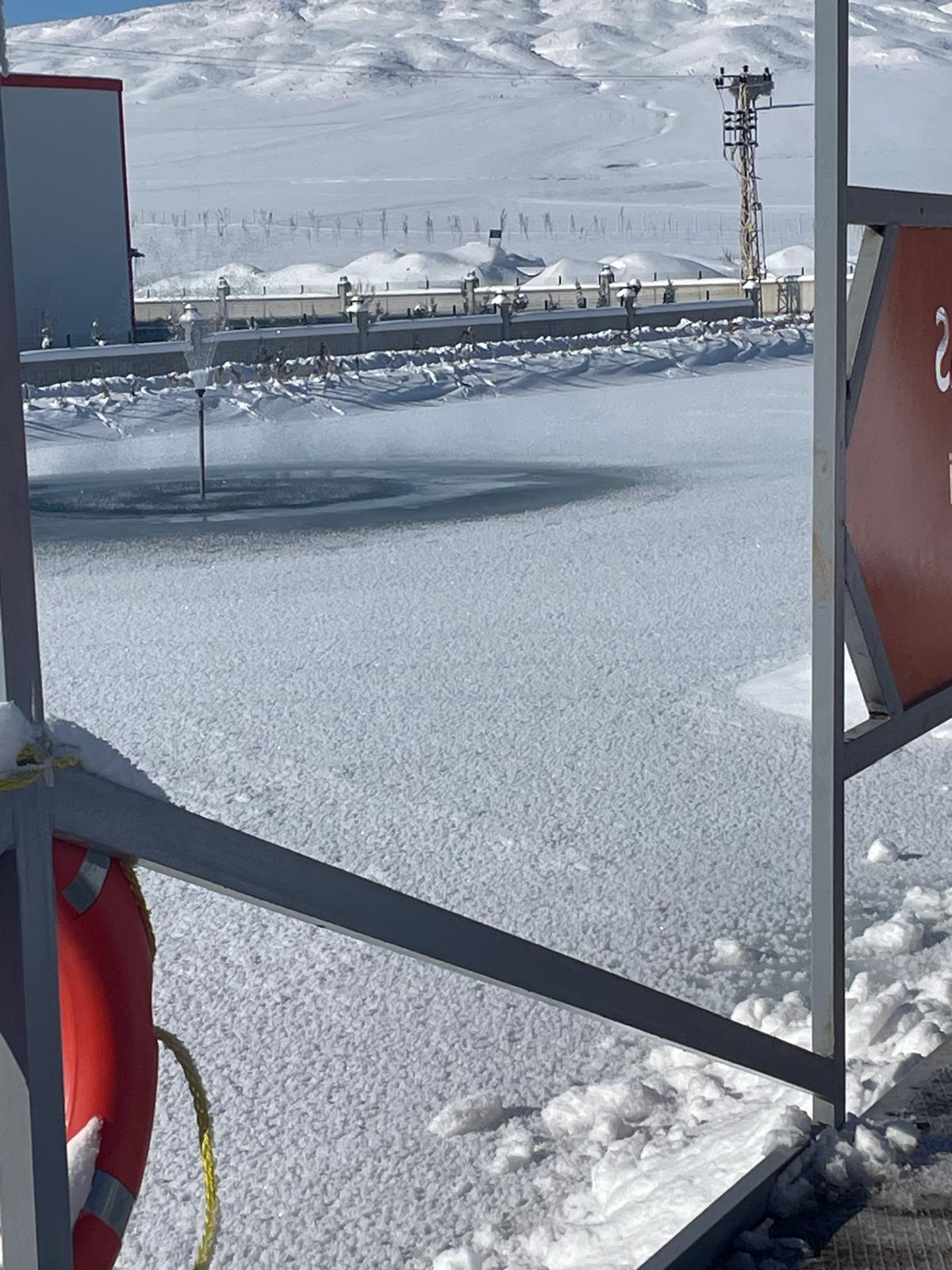 Merkez Organize Sanayi Bölgesi’nde (OSB) bulunan göletin yüzeyi tamamen buzla kaplandı