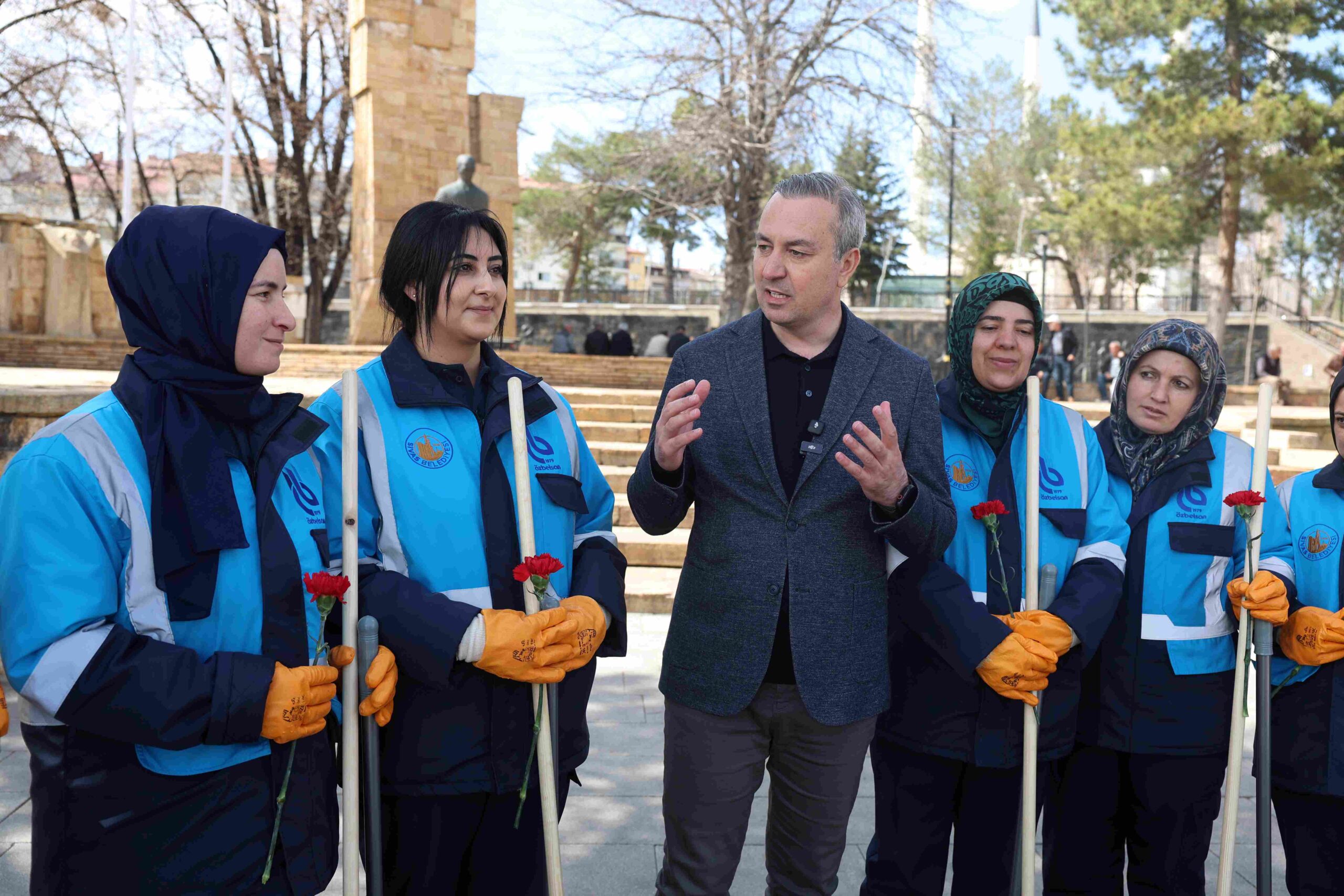 İlk iş günlerinde kadın temizlik çalışanlarını ziyaret ederek karanfil hediye eden Sivas Belediye Başkanı Dr. Adem Uzun, personele yeni görevlerinin hayırlı olmasını temenni ederek çalışmalarında kolaylıklar diledi.