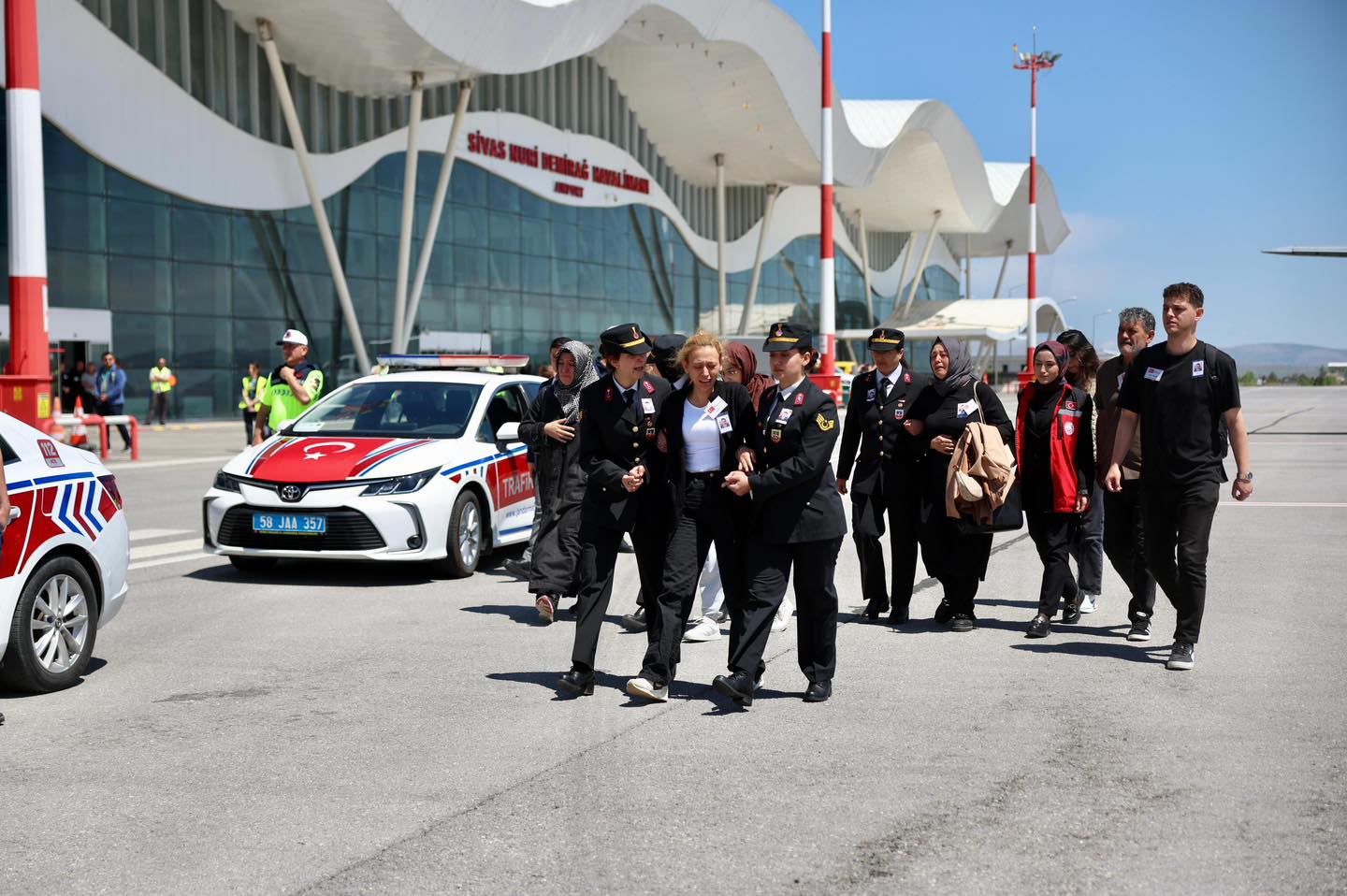 Şehit olan Hemşerimiz Jandarma Astsubay Emre Polat'ın naaşı, Sivas Nuri Demirağ Havalimanı'nda törenle karşılandı