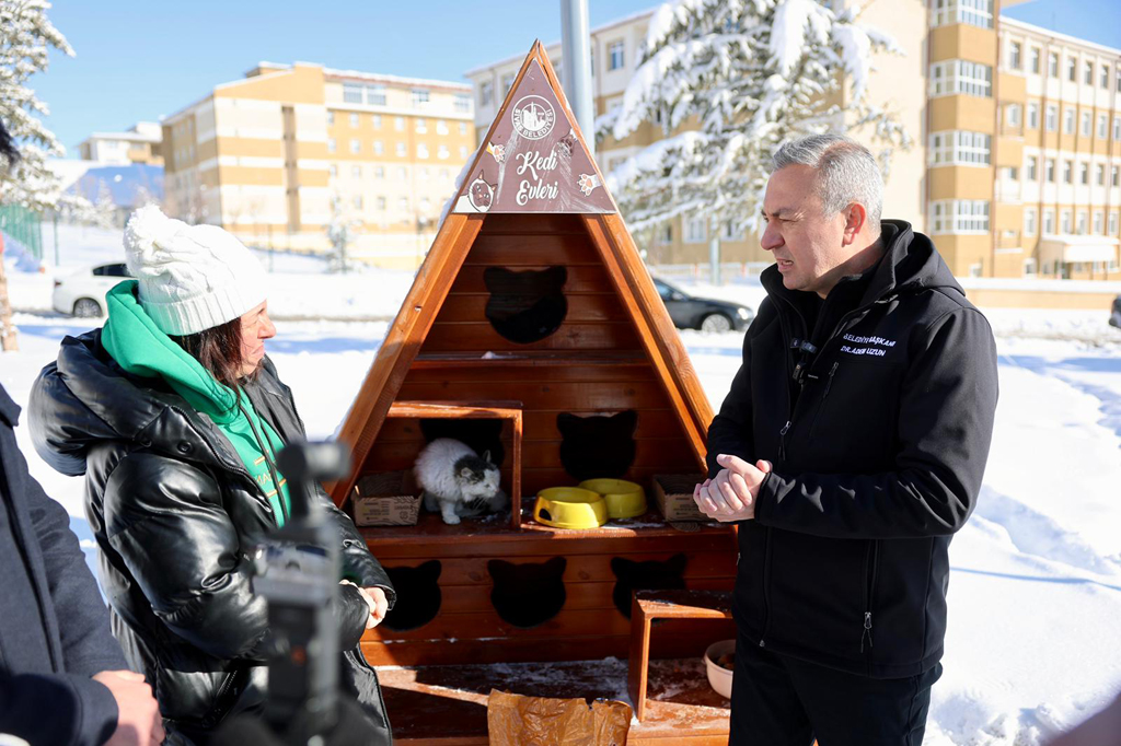 Sessiz dostlarımız için her türlü desteği sağlayama devam ediyoruz. Tüm ekip arkadaşlarımıza ve hayvansever vatandaşlarımıza teşekkür ediyorum. Şu an 50 cm üzerinde bir kar var, -19’lara varan soğuk hava hâkim. Sizlerin de gördüğü gibi kedilerimiz bu kedi evlerinde gayet mutlu ve huzurlu. Aynı zamanda sağlıklı bir şekilde besleniyorlar. Bizler de bunun gururunu yaşıyoruz” dedi.