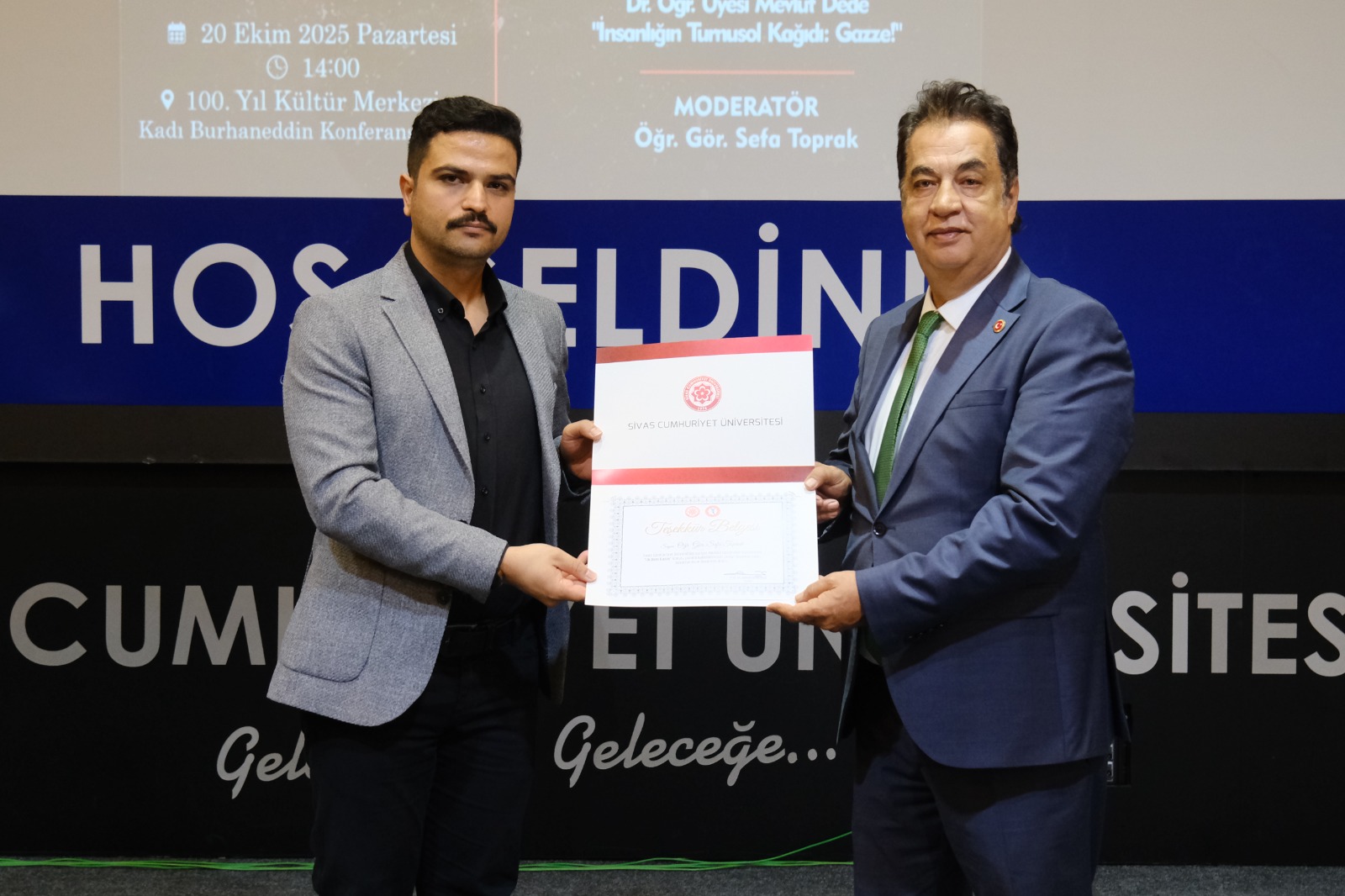 Sivas Cumhuriyet Üniversitesi Kariyer Planlama, Uygulama ve Araştırma Merkezi Müdürü Öğr. Gör. Dr. Adem Ayık ise konuşmasında, Gazze’nin sadece bir şehir değil; adaletin, direnişin, sabrın ve insanlık onurunun sembolü olduğuna dikkat çekerek şunları söyledi: