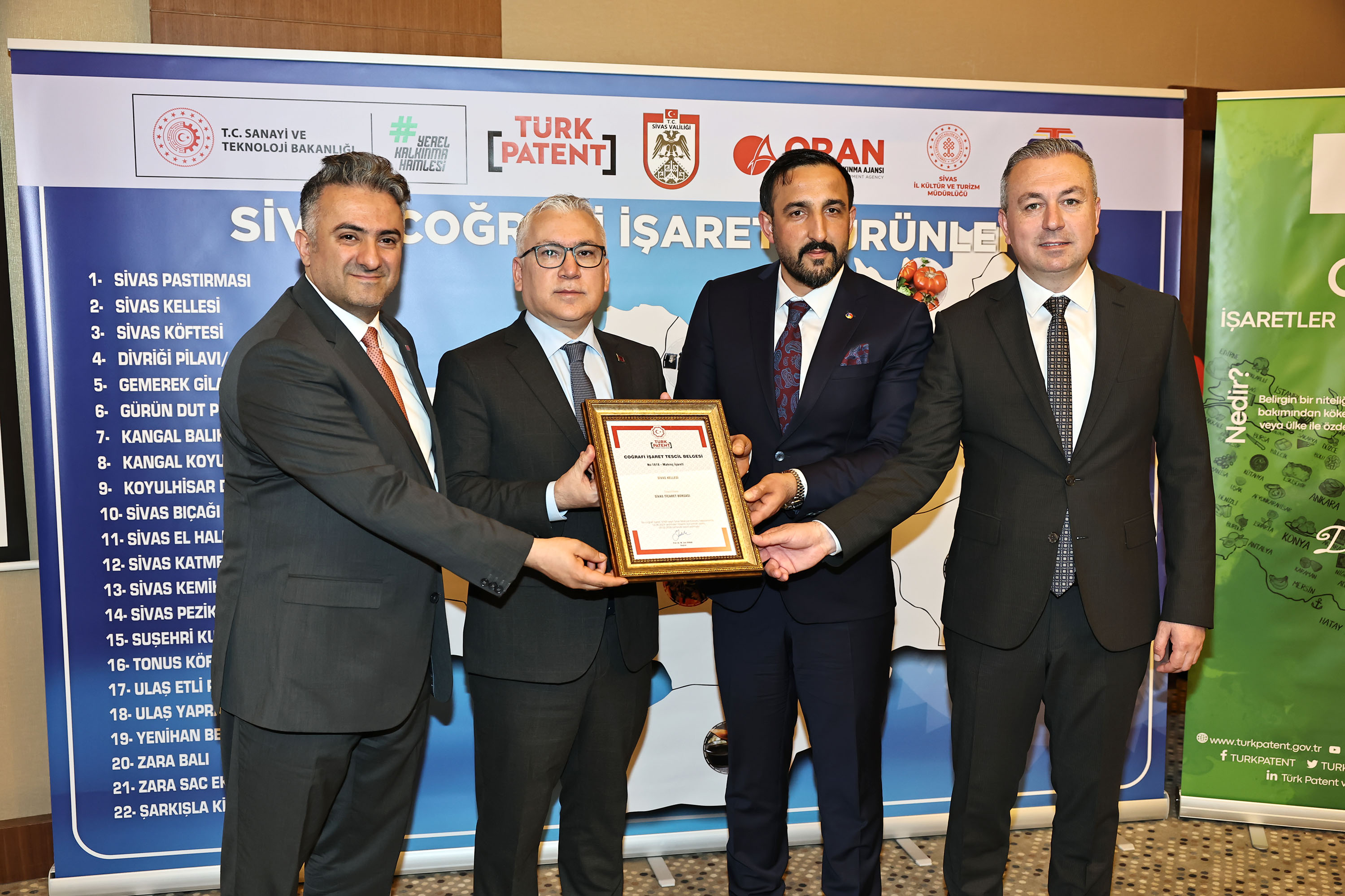 Programın sonunda, Sivas yöresine ait geçmişi yüzyıllar öncesine dayanan, ilimizin köklü gastronomi kültürünün önemli bir parçası olan Sivas Kellesi'nin Coğrafi İşaret Tescil Belgesi, Türk Patent ve Marka Kurumu Başkanı Prof. Dr. Muhammed Zeki Durak tarafından Sivas Ticaret Borsası Başkanı Hayrullah Karakaya'ya takdim edildi.