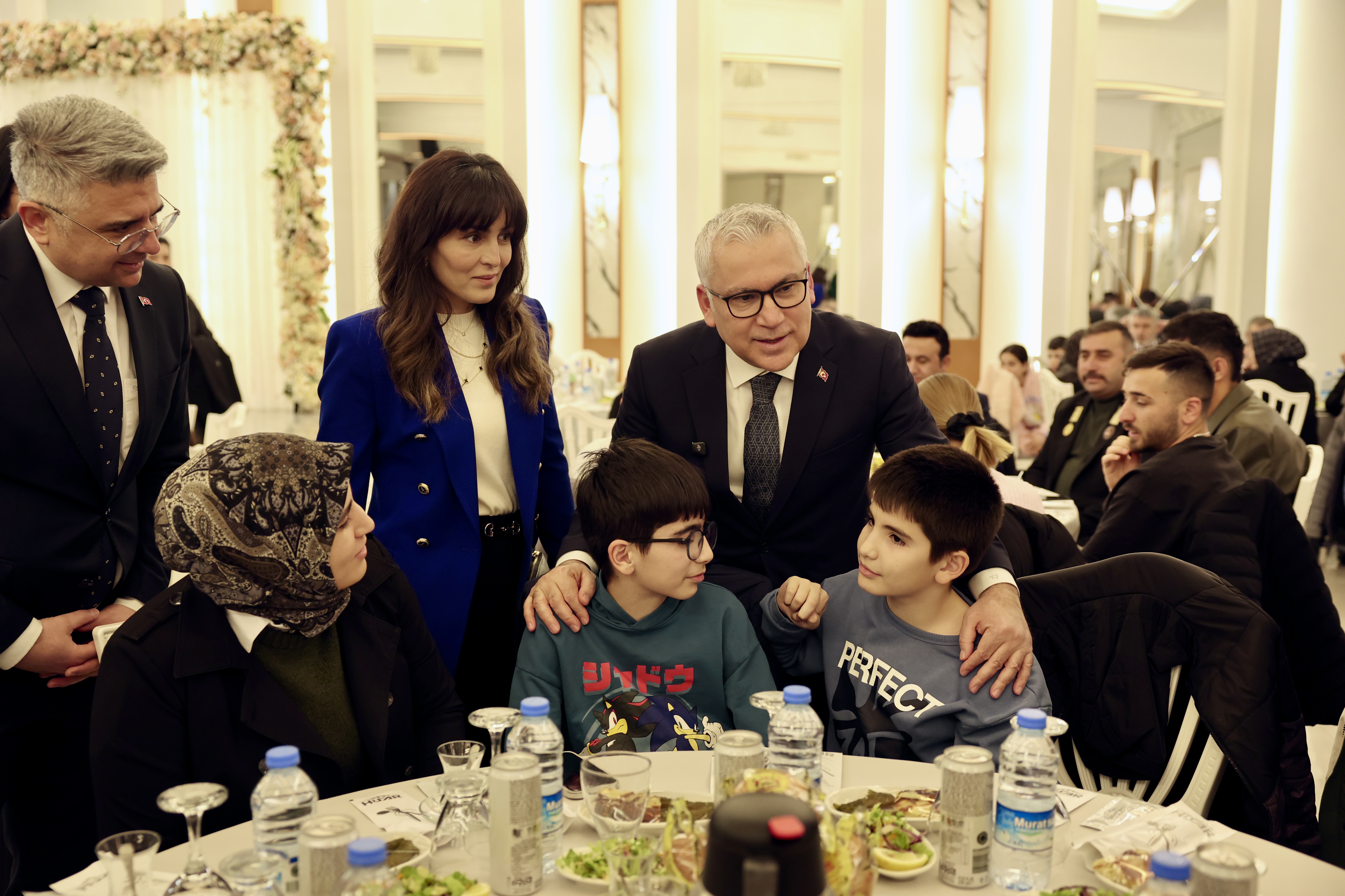 Program öncesinde masaları tek tek dolaşan Şimşek çifti, şehit yakınları ve gazilerle yakından ilgilenerek bir süre sohbet etti; ailelerin Ramazan ayını tebrik ederek hayırlı ve bereketli bir Ramazan temennisinde bulundu.