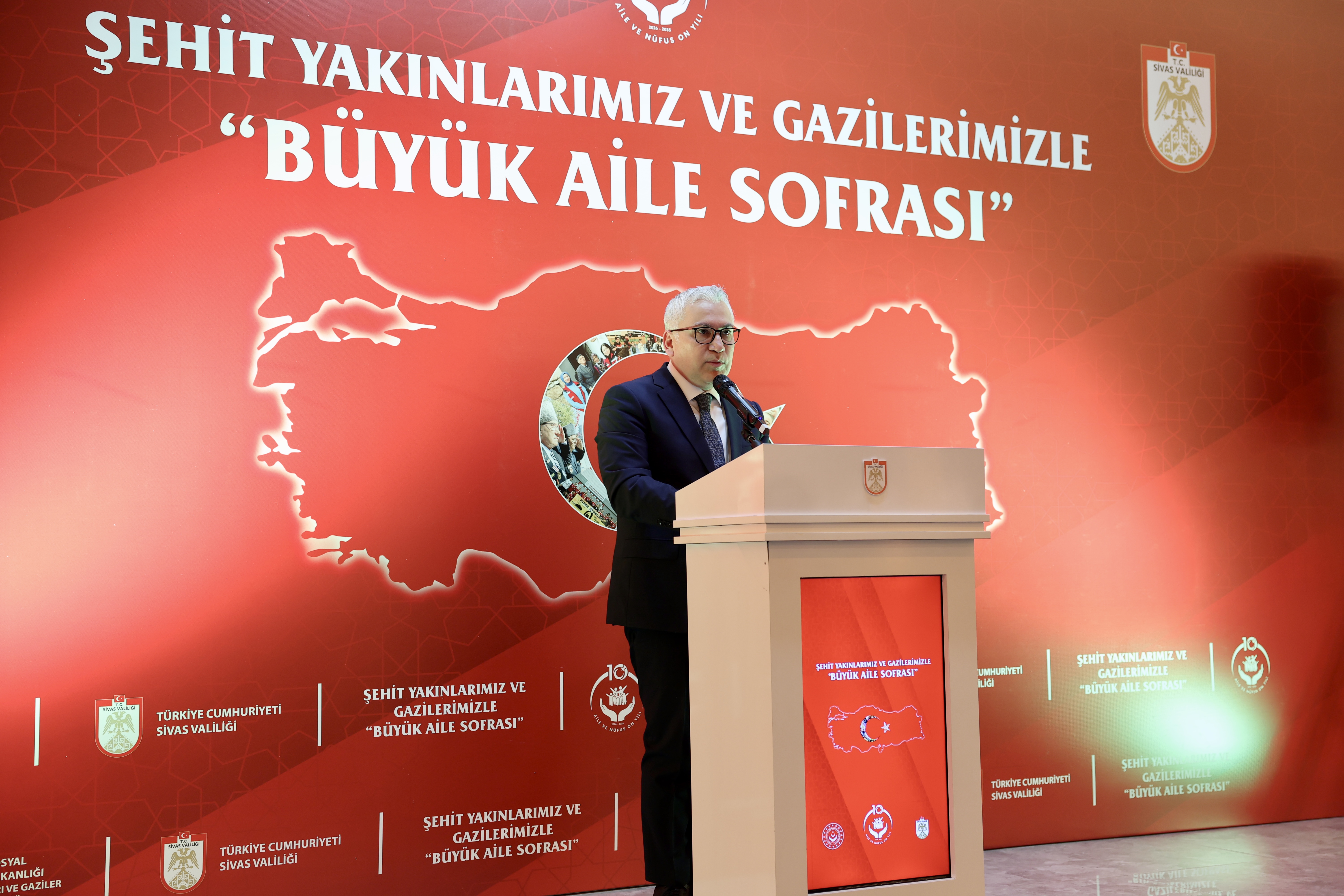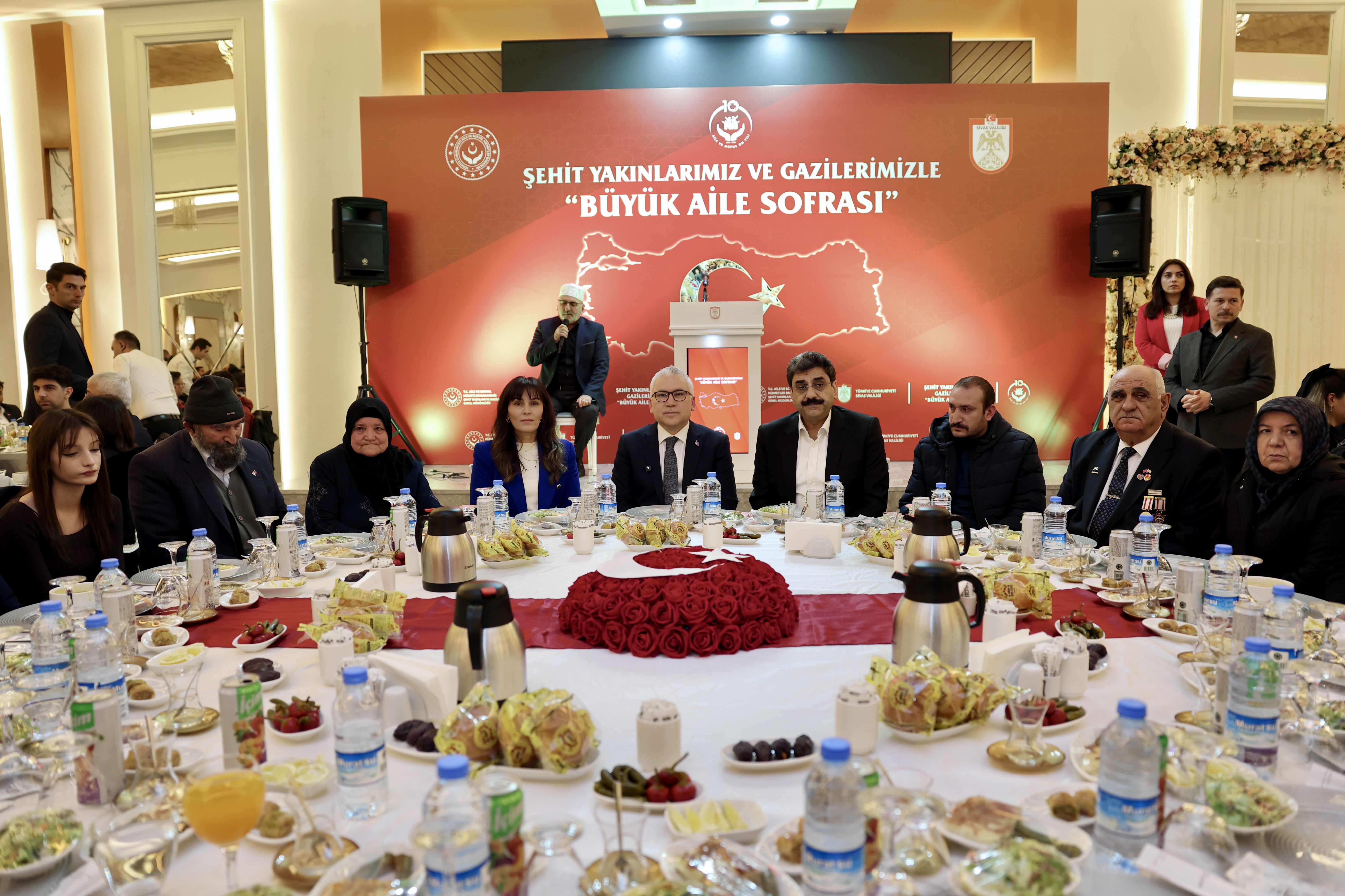 Sivas Valiliği himayesinde ve Aile ve Sosyal Hizmetler İl Müdürlüğü koordinesinde, şehit yakınları ve gaziler onuruna “Büyük Aile Sofrası” iftar programı düzenlendi.