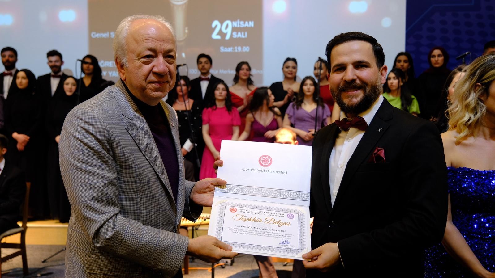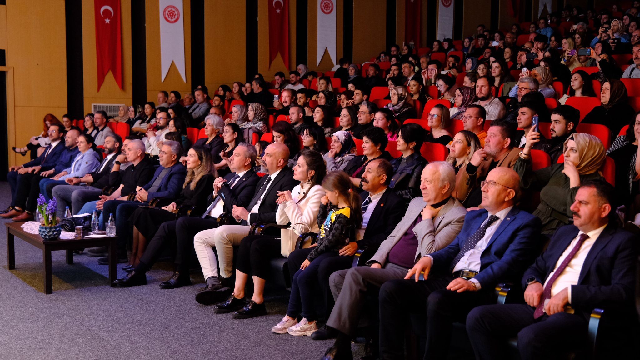 100. Yıl Kültür Merkezinde düzenlenen konsere; Sivas Valisi Yılmaz Şimşek’in eşi Dr. Çiğdem Olgun Şimşek Hanımefendi, Sivas Belediye Başkanı Dr. Adem Uzun, Rektör Vekili Prof. Dr. Hayati Öztürk, Rektör Yardımcısı Prof. Dr. Salih Cem İnan, Rektör Danışmanı Fuat Çamlıbel, il protokolü, akademisyenler, öğrenciler ve davetliler katıldı.