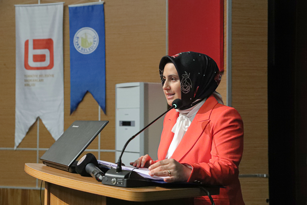 Konuşmaların ardından Türkiye Belediye Başkanlar Birliği Genel Başkanı Mehmet Yeloğlu, Başkan Yardımcısı Esra Meran Uslu’ya günün anısına plaket takdim etti.