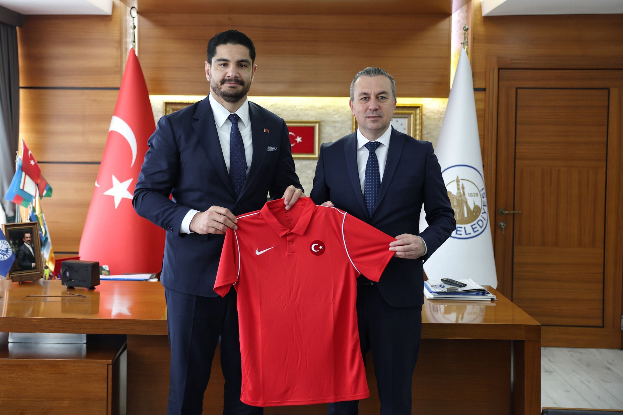 Ülkemize büyük gururlar yaşatan eski milli güreşçimiz ve Türkiye Güreş Federasyonu Başkanı hemşehrimiz Taha Akgül, Belediye Başkanı Dr. Adem Uzun'u makamında ziyaret etti.