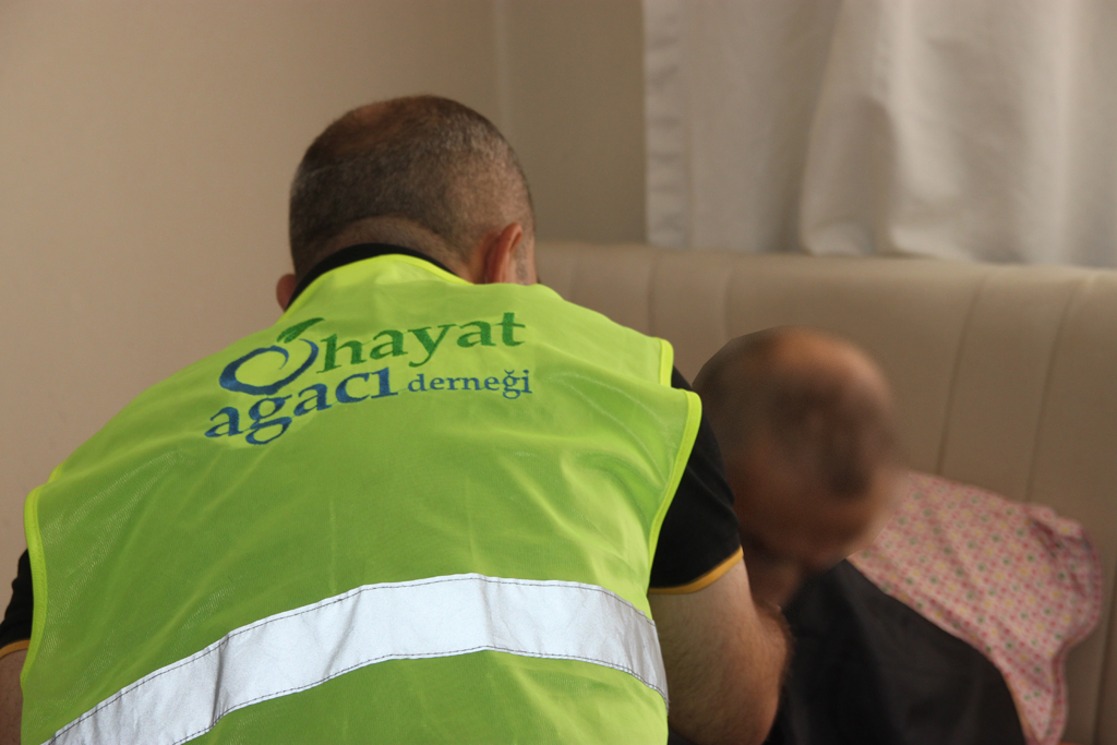 YAŞLILAR EVLERİNDE TIRAŞ EDİLİYOR